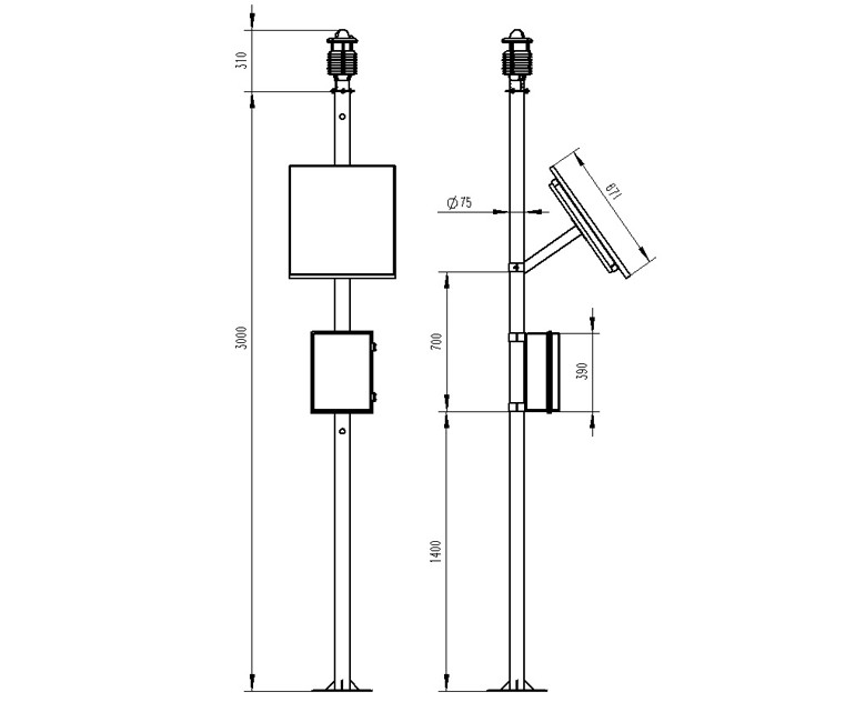 5、两米碳钢支架,顶部无需法兰盘可直接套接传感器(实用新型专利,专利号ZL 2020 2 3211795.0)