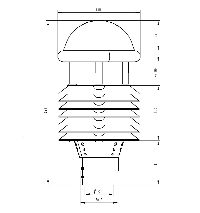 3.空气温度:测量原理二极管结电压法,-40-80℃(±0.3℃),分辨率0.01℃;